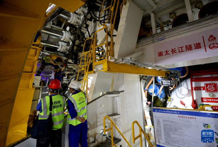 崇太长江隧道“领航号”盾构机抵达长江江心