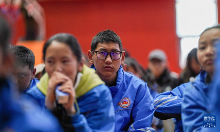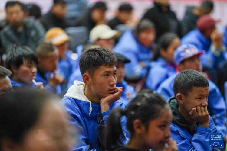 4月17日,西藏山南市特殊教育学校师生观看无障碍电影《神笔马良》。