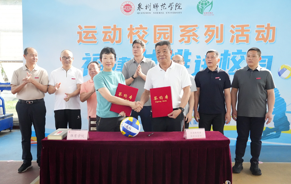 活动中,泉州师范学院体育学院与安溪铁观音体育俱乐部正式签署战略合作协议。双方将围绕人才培养、赛事推广等领域展开深度合作。安溪铁观音体育俱乐部董事长陈连河表示,一直以来,安溪铁观音体育俱乐部积极投身于体育事业的发展,此次与福建女排合作走进校园,是践行社会责任的重要举措,期待在这片校园里,能有更多的同学因这场活动爱上排球,在排球运动中收获健康与快乐。