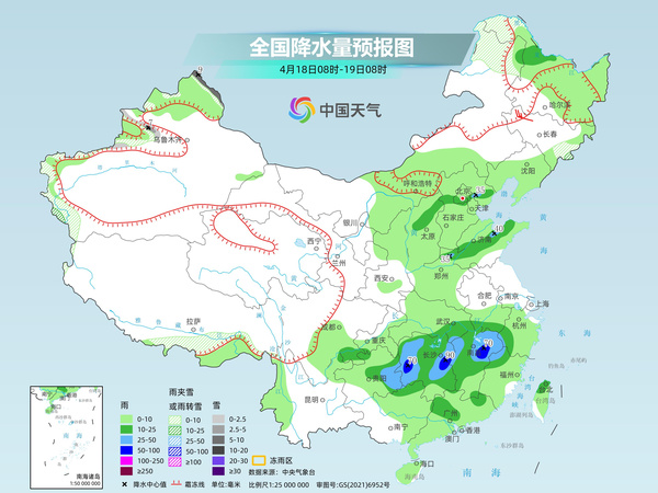 未来三天(4月18日至20日),南方多地阴雨连连,江南、华南等地局地有大暴雨,并伴有强对流天气,需注意防范。受冷空气和降水影响,今天,华北、黄淮等地的暖热天气转折,气温明显下降,明天南方多地也将出现降温,公众请根据天气变化,适时调整着装。