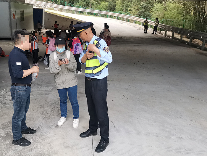 厦门高速执法支队、厦门高速交警支队、厦门百城金安公司等“5+N”联动协作单位人员接警后,迅速赶赴现场,到场后,发现一辆大客车打着双闪停在应急车道内,现场还有一大群的学生。现场工作人员随即分头行动,进行安全布控,考虑到现场空间有限且过往车速较快,执法人员迅速将师生们引导至前方不远处双溪口大桥下的前置点休息等候,避免滞留路面的不可控风险。其间,执法人员与高速交警、应急养护人员协助老师看管学生们,并协调运输公司尽快就近调派转运车辆。执法人员经了解得知,该车运载的是泉州永春县某小学到厦门天竺山研学的33名师生,返程途中车辆突发故障;期间,执法人员检查了驾驶员、车辆以及包车的证件与手续,排除了存在违法运输等行为。