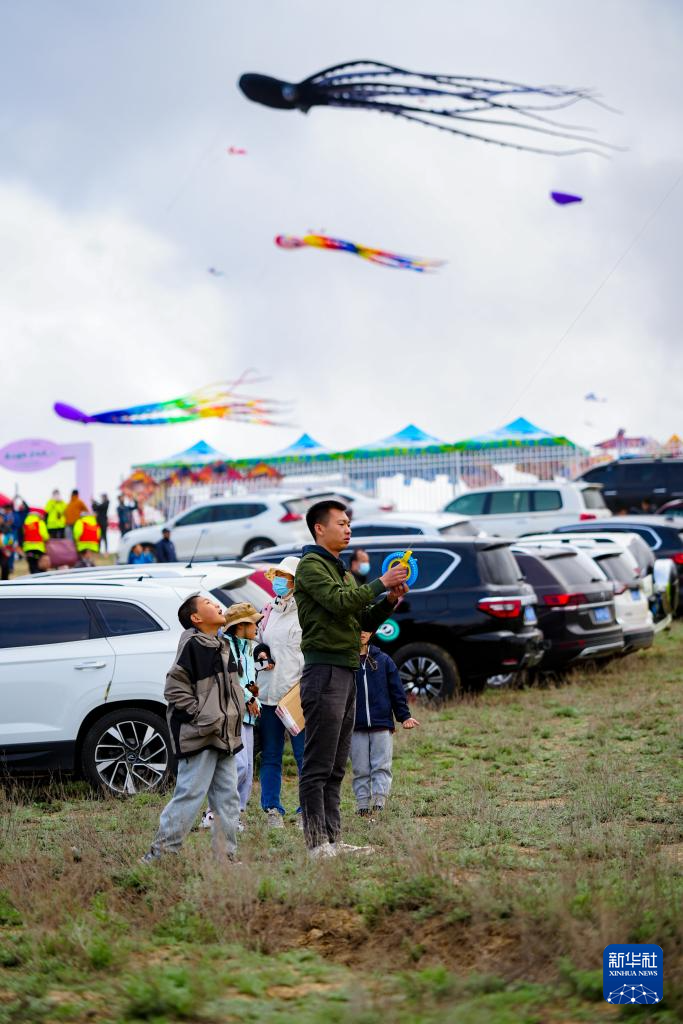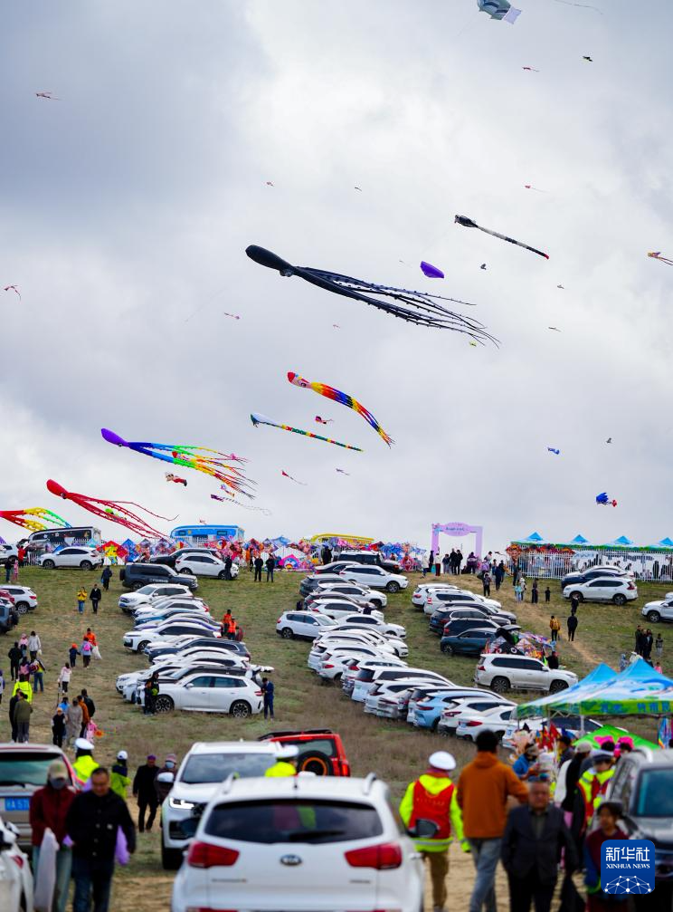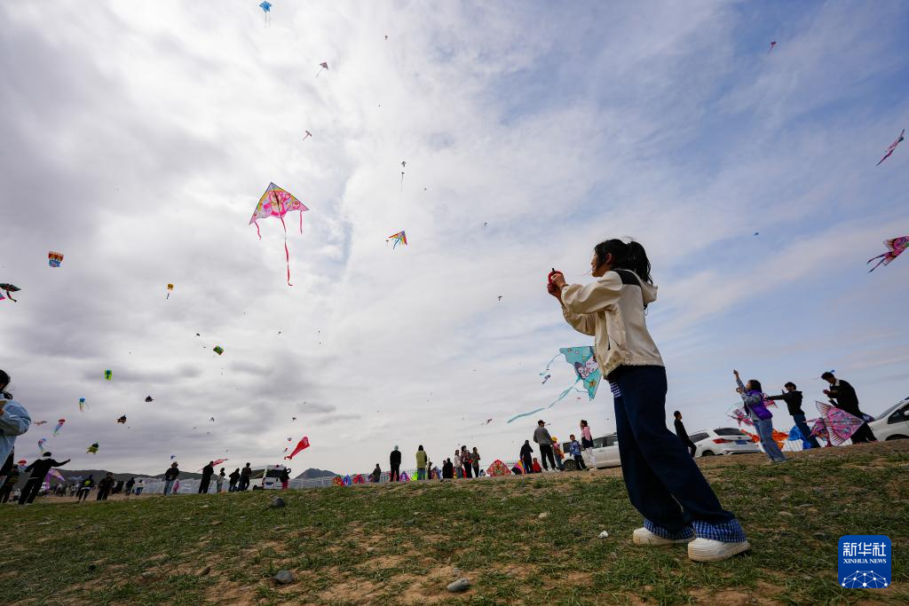 4月19日,人们在新疆乌鲁木齐市水磨沟区风筝嘉年华活动现场放风筝。
