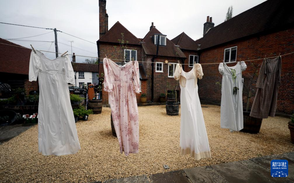 这是4月18日在英国汉普郡乔顿村拍摄的简·奥斯汀故居附近悬挂的衣服。 今年是英国女小说家简·奥斯汀诞辰250周年。奥斯汀1775年12月16日出生于汉普郡的史蒂文顿,一生创作了《理智与情感》《傲慢与偏见》《爱玛》等多部文学作品。她成年后随家人在埃文郡巴斯生活多年,最后生活在故乡汉普郡的乔顿村。奥斯汀的小说展现了当时英国乡村中产阶级的日常生活和田园风光,一改英国18世纪“假浪漫主义”文学潮流,对19世纪现实主义小说的发展产生重要影响,在英国文学发展史上有承上启下的意义。 新华社记者 李颖 摄