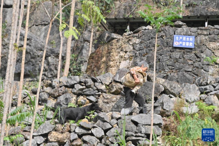 4月21日,广西马山县金钗镇龙印村村民在铺设水管,准备将当地政府送来的水引进水柜。