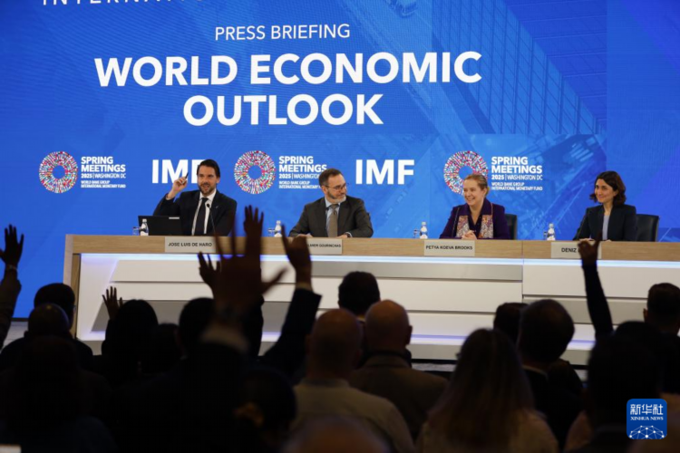 4月22日,国际货币基金组织(IMF)在美国华盛顿举行《世界经济展望报告》新闻发布会。新华社记者 谢锷 摄