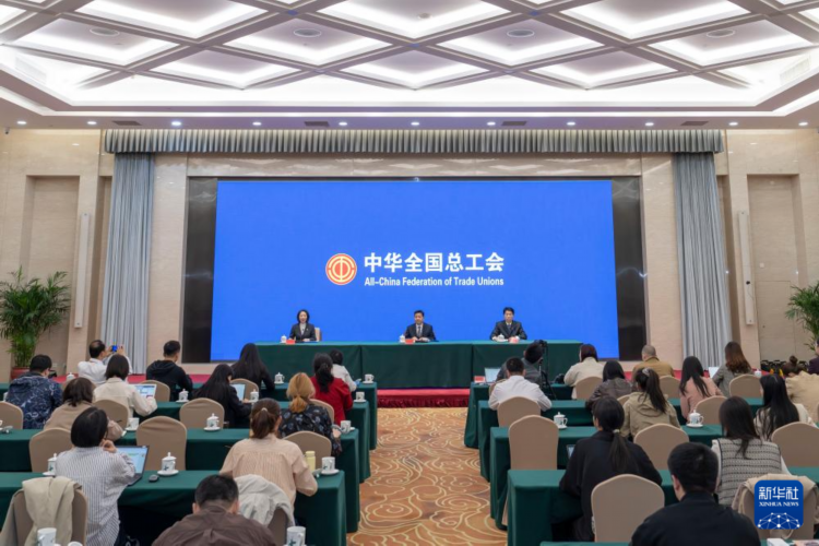 这是4月22日拍摄的中华全国总工会新闻发布会现场。新华社记者 才扬 摄
