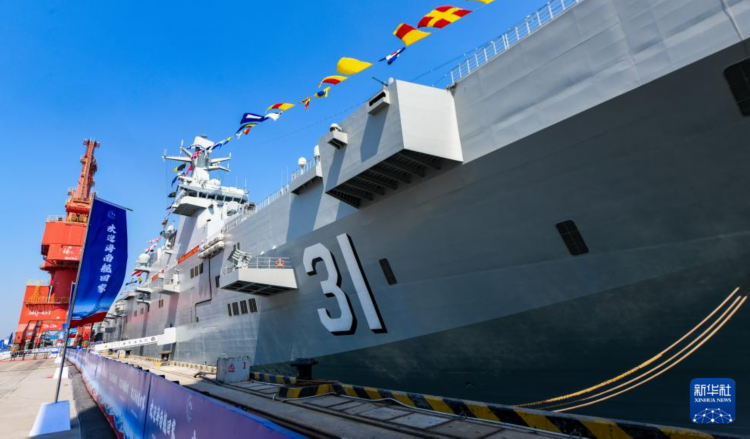 4月22日,在海南省澄迈县马村港散货码头,海南省为海军海南舰举行欢迎仪式,欢迎海南舰“回家”。