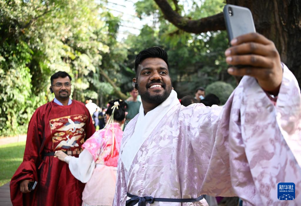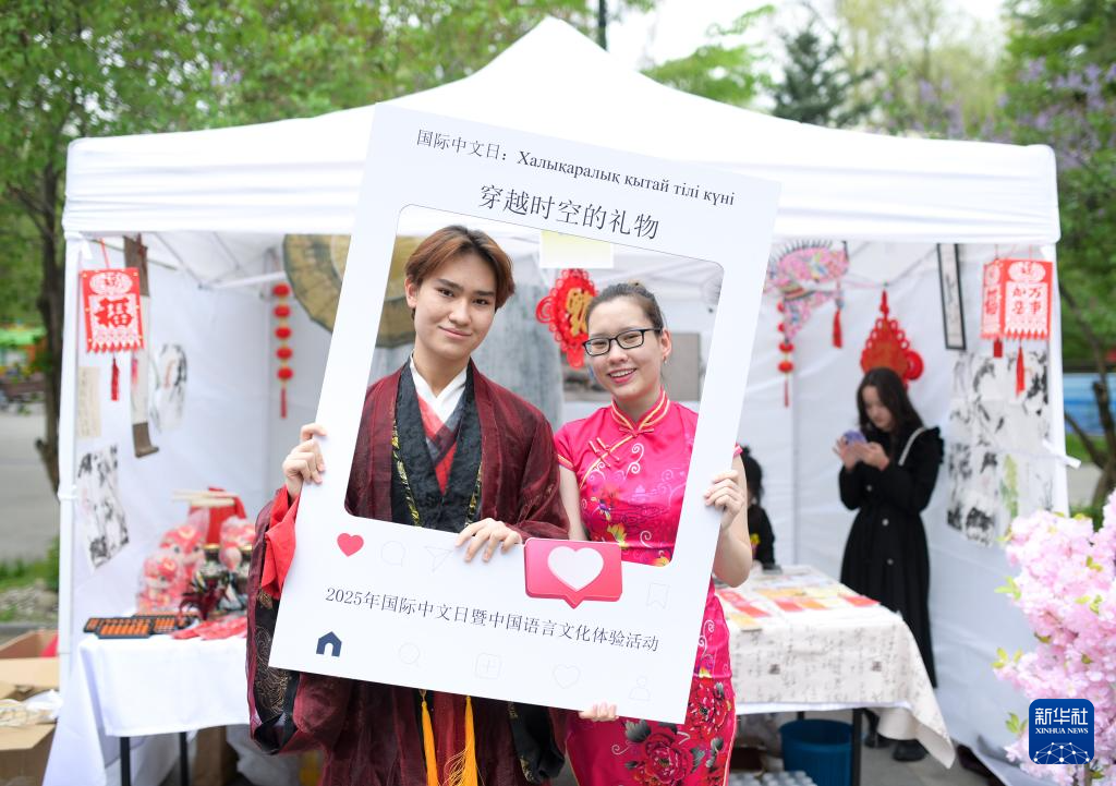 哈萨克斯坦阿拉木图庆祝“国际中文日” 4月19日,在哈萨克斯坦阿拉木图,人们在“国际中文日”庆祝活动上留影。 “国际中文日”庆祝活动19日在哈萨克斯坦阿拉木图中央休闲公园举办。本次活动以“中文:穿越时空的礼物”为主题,设置了包括书法、国画、汉服打卡等中国文化体验活动,以及古筝演奏、互动游戏等。中哈政商学界代表、文化团体、中文专业师生代表和中国文化爱好者欢聚一堂,感受中华文化之美。 新华社记者 李任滋 摄