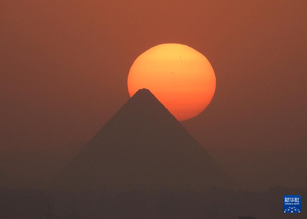 日落金字塔 这是4月19日在埃及开罗拍摄的吉萨金字塔群日落景色。 新华社记者 刘旻昊 摄
