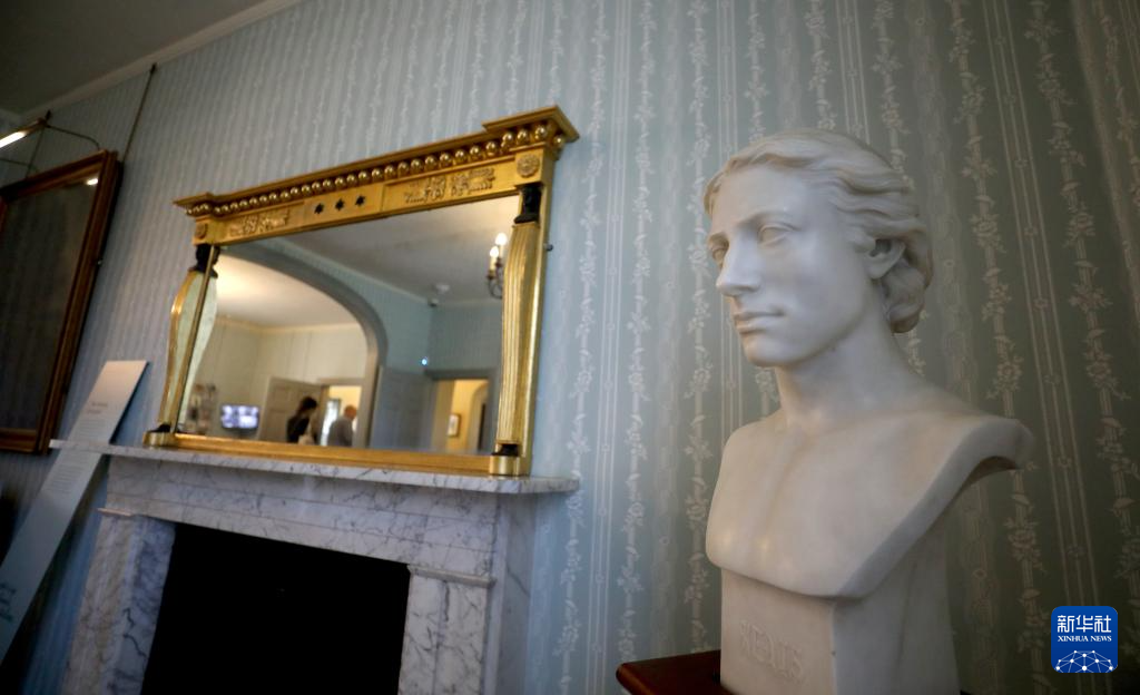 永远的诗人 不朽的浪漫——探访济慈故居 这是4月16日在英国伦敦济慈故居内拍摄的济慈雕像。 英国浪漫主义诗人约翰·济慈的故居坐落于伦敦北部汉普斯特德社区一处安静的小巷中。济慈于1818年到1820年间居住于此。济慈在此期间写下了著名诗歌《夜莺颂》。 新华社记者 李颖 摄