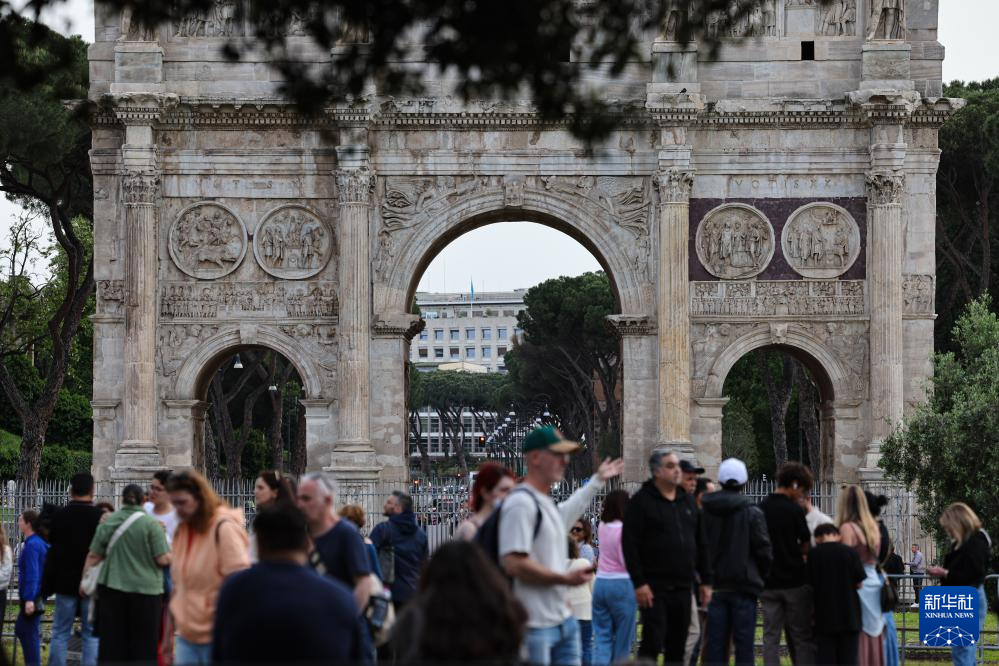 罗马:享受假期 4月20日,游客在意大利罗马的君士坦丁凯旋门附近游览。 复活节假期期间,意大利首都罗马迎来客流高峰,人们来到斗兽场、西班牙广场等标志性景点,尽享假日时光。 新华社记者 李京 摄
