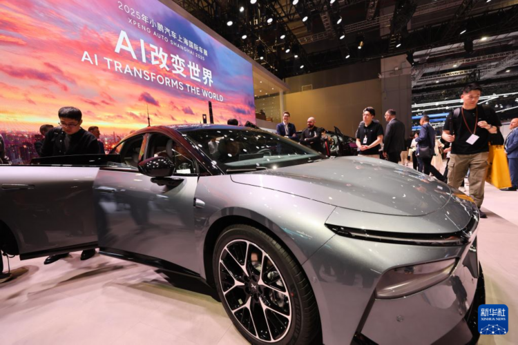 4月23日,参观者在小鹏汽车展台上的一辆G7汽车旁驻足观看。