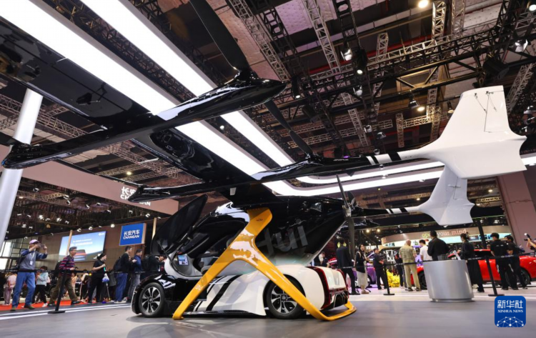 4月23日拍摄的奇瑞汽车展台上展出的一款飞行汽车。