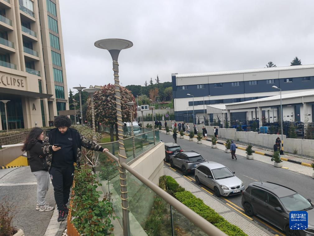 4月23日,在土耳其伊斯坦布尔,一处小区的居民在户外避险(手机照片)。新华社记者 刘磊 摄