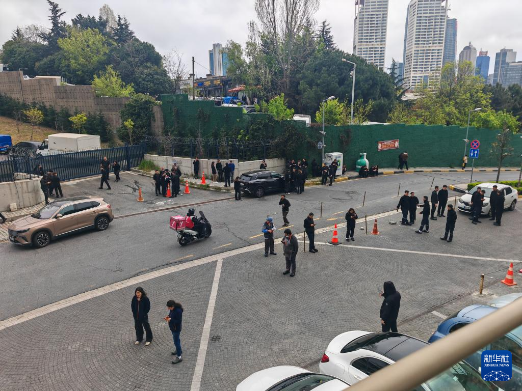 4月23日,在土耳其伊斯坦布尔,一处小区的居民在户外避险(手机照片)。新华社记者 刘磊 摄