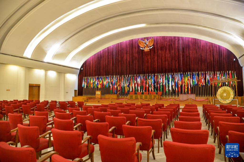 这是4月23日在印度尼西亚万隆拍摄的亚非会议旧址独立大厦内景。