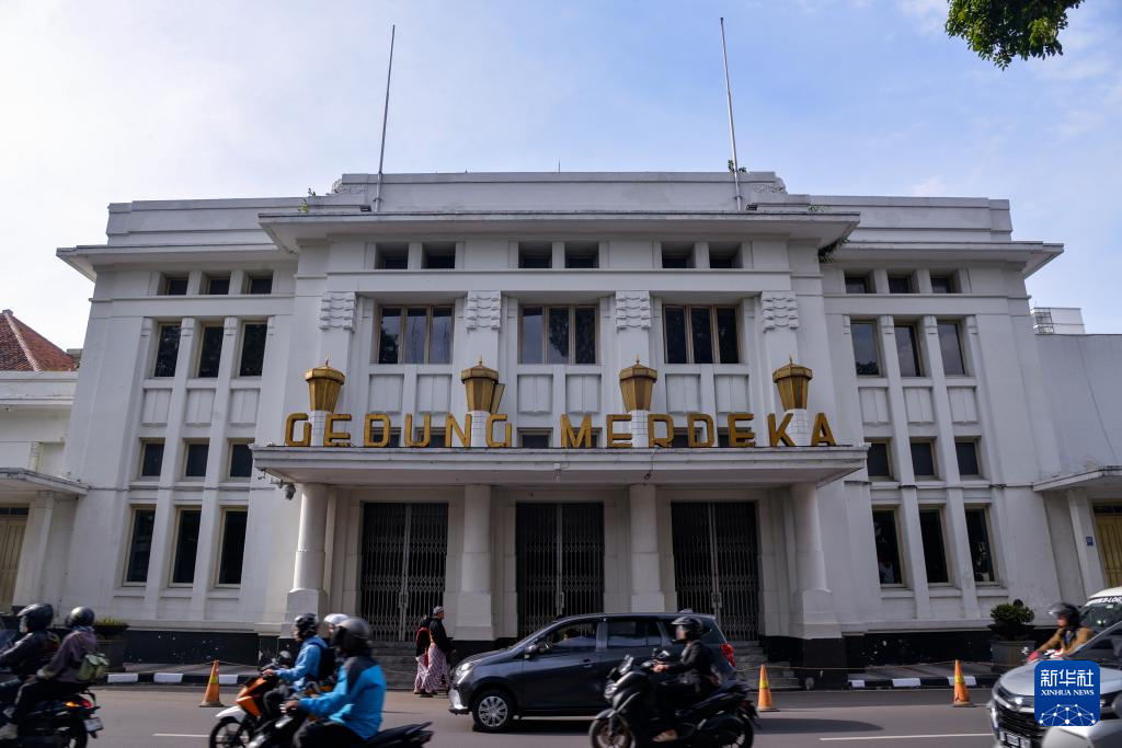 这是4月23日在印度尼西亚万隆拍摄的亚非会议旧址独立大厦外景。