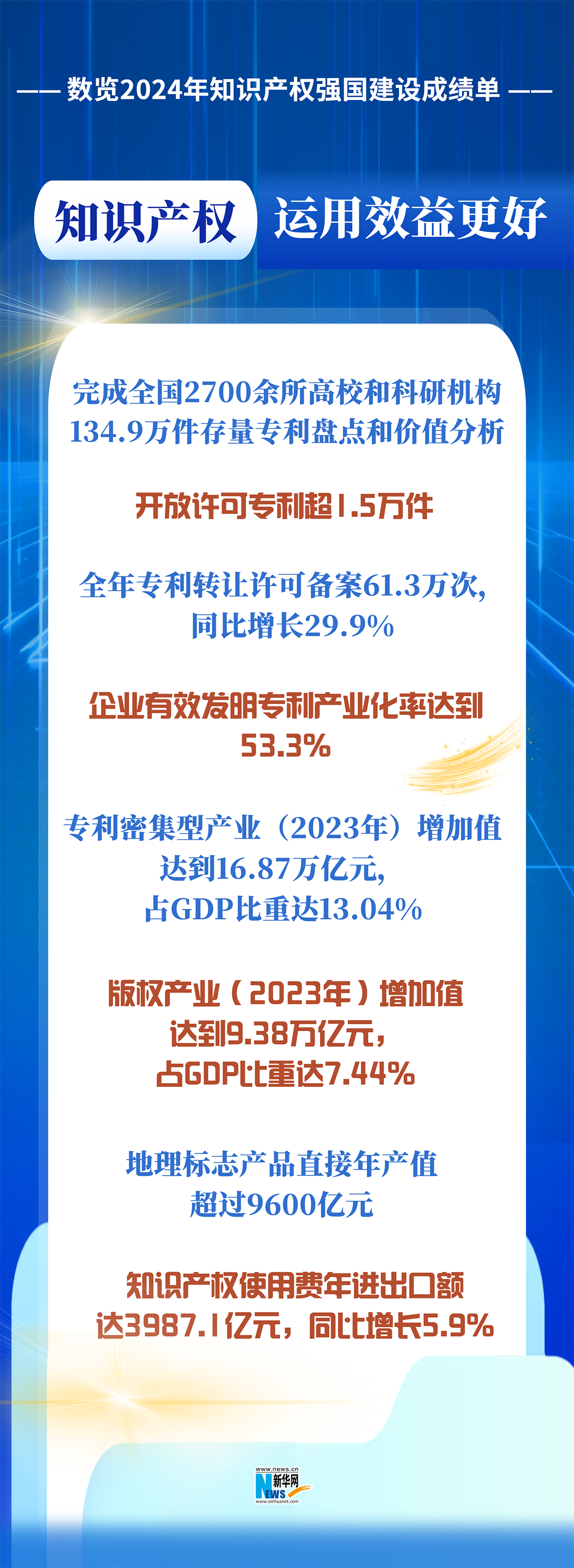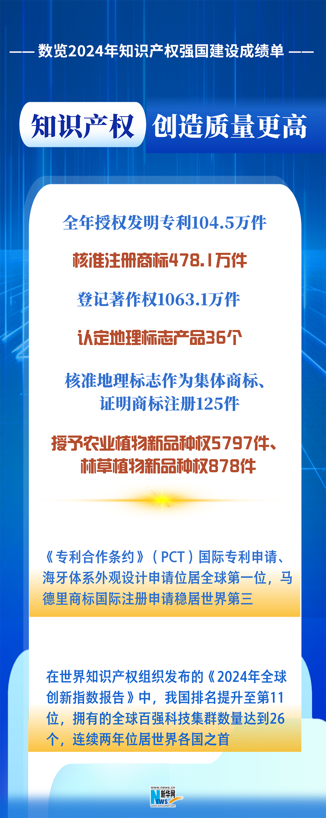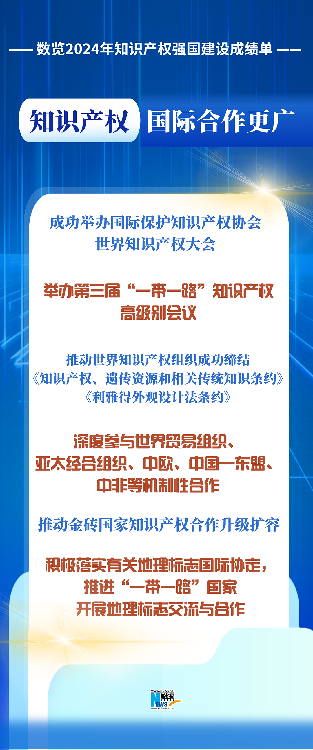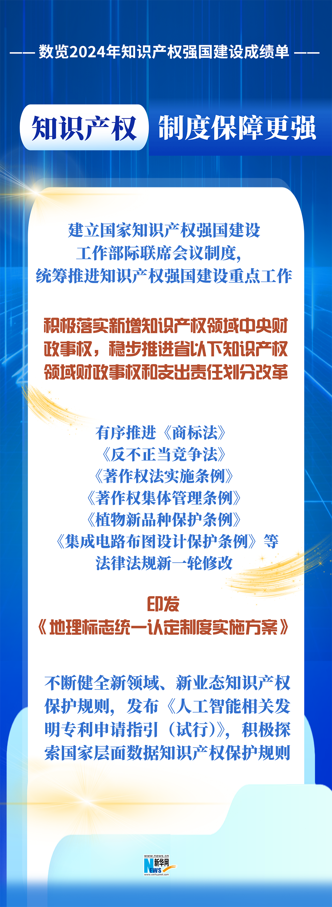 在4月24日召开的国新办新闻发布会上,国家知识产权局发布2024年中国知识产权强国建设取得的主要进展。六个维度、多组数据速览2024年知识产权强国建设成绩单。