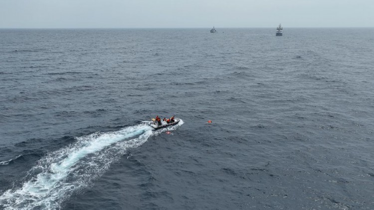 4月23日,中越海警开展海上联合搜救演练,模拟营救落水人员。(中国海警供图)