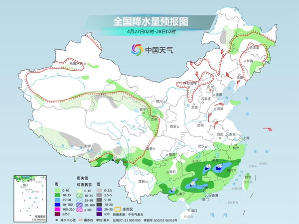明天,内蒙古东北部、黑龙江西北部、西藏东部和南部、青海大部、甘肃河西等地部分地区有小到中雪或雨夹雪,其中,青海北部、甘肃河西、内蒙古东北部、黑龙江西北部等地部分地区有大到暴雪。华南北部、西南地区东部以及湖南西部、江西北部和东南部、西藏东南部等地部分地区有中到大雨,其中,西藏东南部、江西东南部、贵州东南部等地部分地区有暴雨。