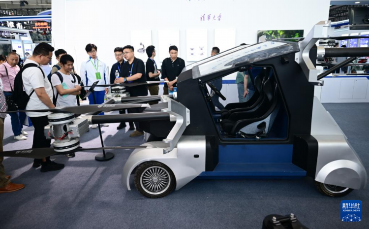 4月26日,观众在第三届中国(安徽)科技创新成果转化交易会上参观一款飞行汽车。