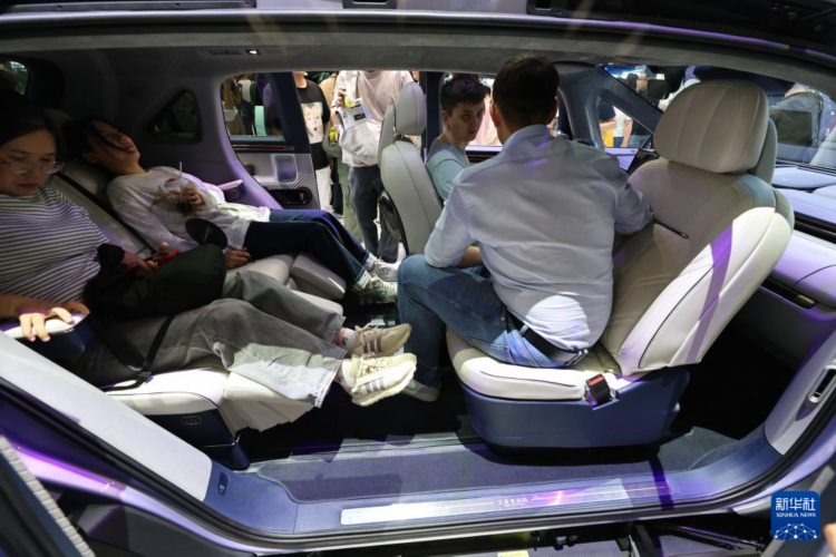 4月26日,参观者在极氪汽车展台体验一款汽车的座椅布局。
