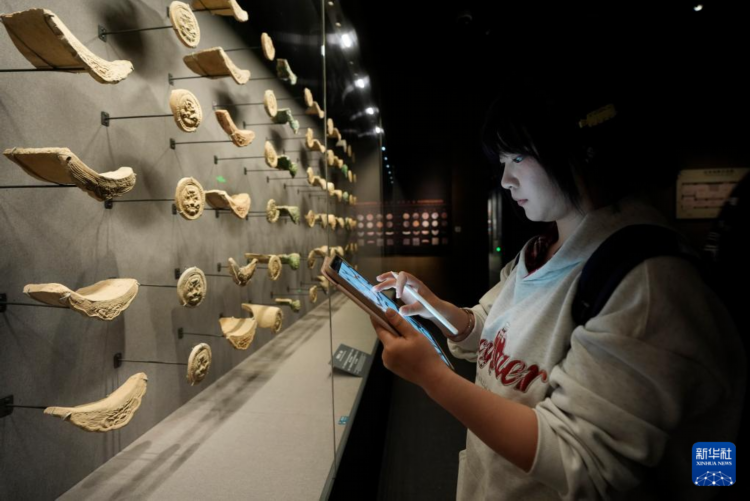 4月23日,“丝路宁夏文创”团队成员杨柳钰在宁夏银川西夏陵博物馆采集文创素材。