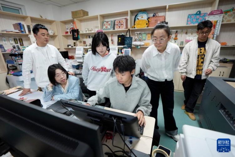 4月23日,“丝路宁夏文创”团队成员在实训室设计、制作文创产品。