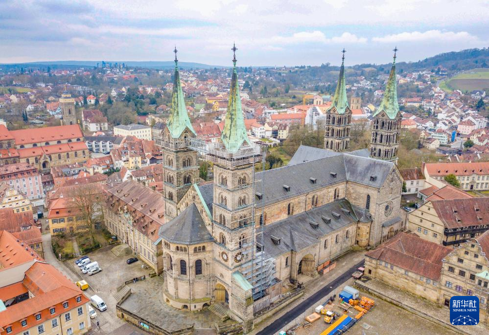 这是3月24日航拍的德国班贝格主教堂。