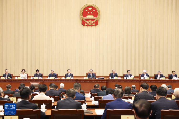 4月27日上午,十四届全国人大常委会第十五次会议在北京人民大会堂举行第一次全体会议。赵乐际委员长主持。新华社记者 庞兴雷 摄