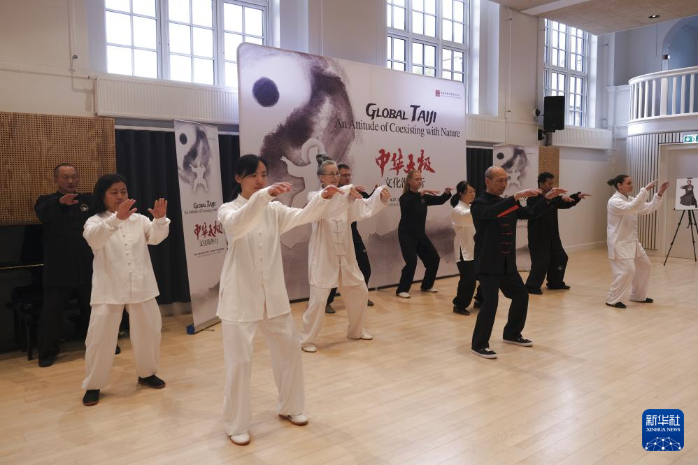 4月25日,太极拳爱好者在丹麦首都哥本哈根表演太极拳。