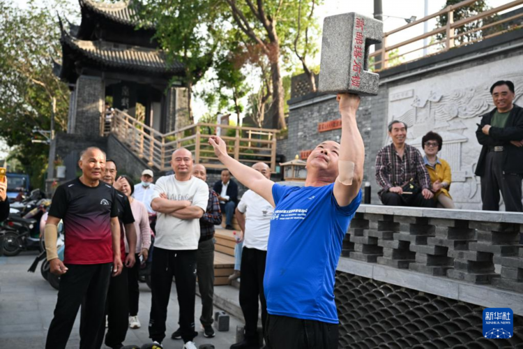 当日,在江苏省高邮市运河·盂城驿街区,木偶戏、挑花担、撂石锁等非遗项目表演吸引众多游人驻足观看。