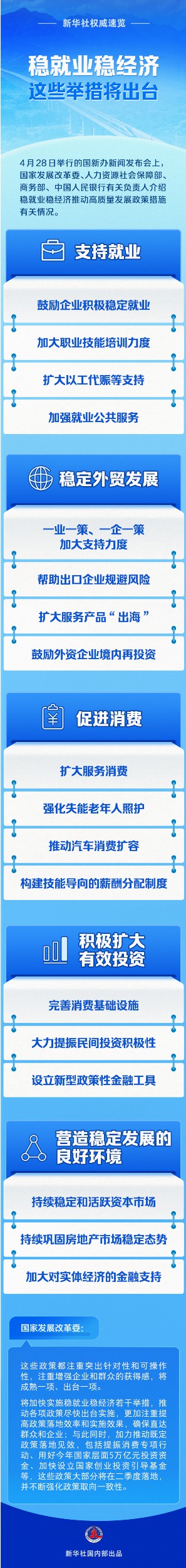 新华社北京4月28日电 题:稳就业稳经济推动高质量发展 多部门详解五方面若干举措