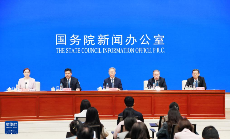 4月28日,国务院新闻办公室在北京举行新闻发布会,国家发展改革委副主任赵辰昕、人力资源社会保障部副部长俞家栋、商务部副部长盛秋平、中国人民银行副行长邹澜介绍稳就业稳经济推动高质量发展政策措施有关情况,并答记者问。新华社记者 潘旭 摄