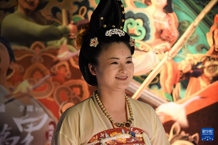 4月28日晚,大陆动画电影《长安三万里》闽南语版在台北首映。身着唐制汉服、画着精致唐代妆容的台湾女孩林家萱,专门从北京飞回台北参加这次首映记者会。