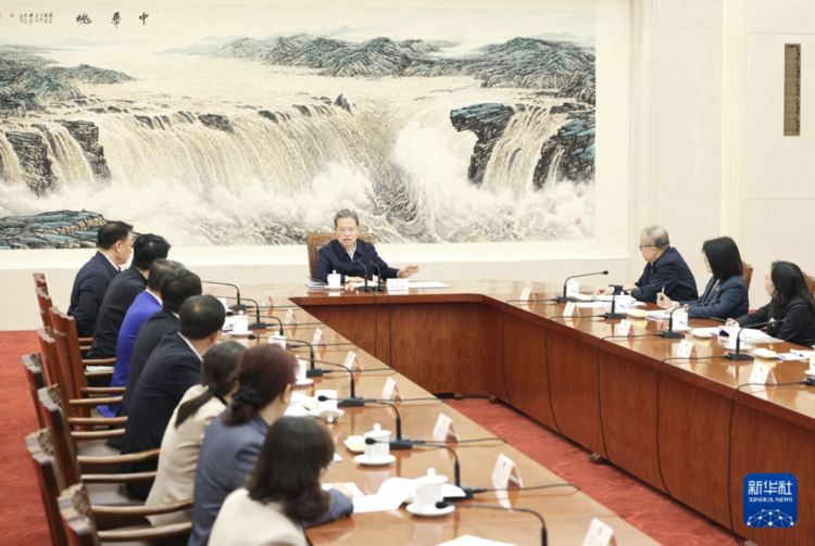 4月29日下午,中共中央政治局常委、全国人大常委会委员长赵乐际同列席十四届全国人大常委会第十五次会议的全国人大代表座谈交流。新华社记者 庞兴雷 摄