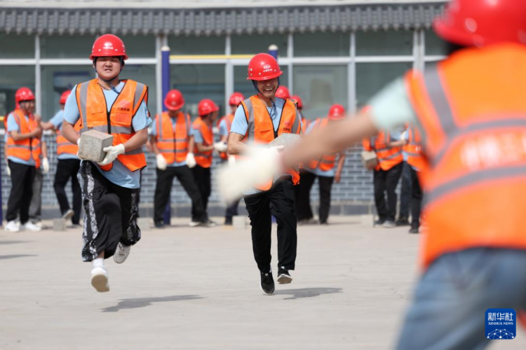 4月29日,中铁二十局的建设者参加混凝土接力搬运比赛。