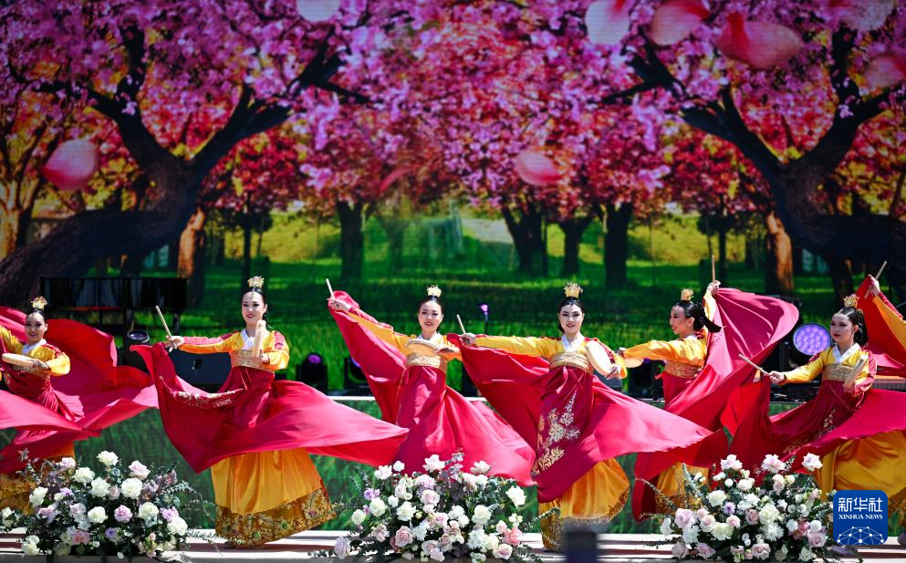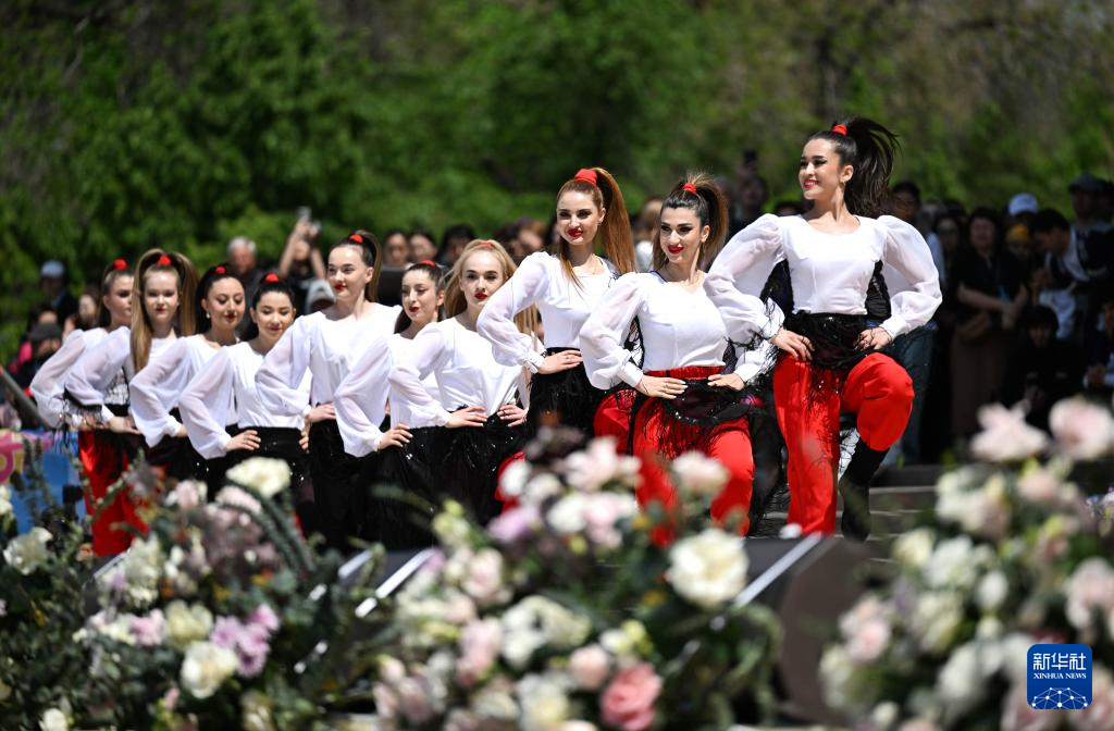 5月1日,演员在哈萨克斯坦阿拉木图表演舞蹈,庆祝民族团结日。