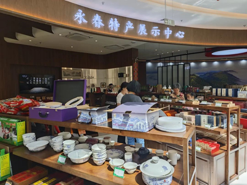 不仅如此,服务区还特别设置了永春特产展示中心,篾香、老醋、佛手茶、纸织画、养脾散、熟地等永春非遗产品一应俱全。