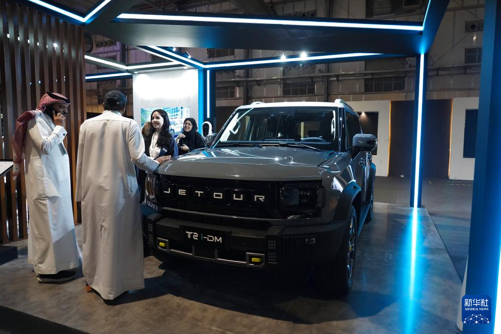 5月4日,在沙特阿拉伯利雅得举办的展会上,观众参观捷途汽车。