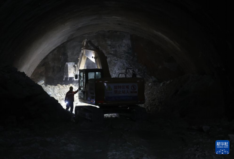 5月5日,中铁十四局工人在黑龙关隧道建设现场施工。