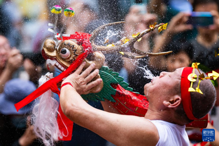 5月5日,“鱼行醉龙节”巡游队伍在活动上表演。