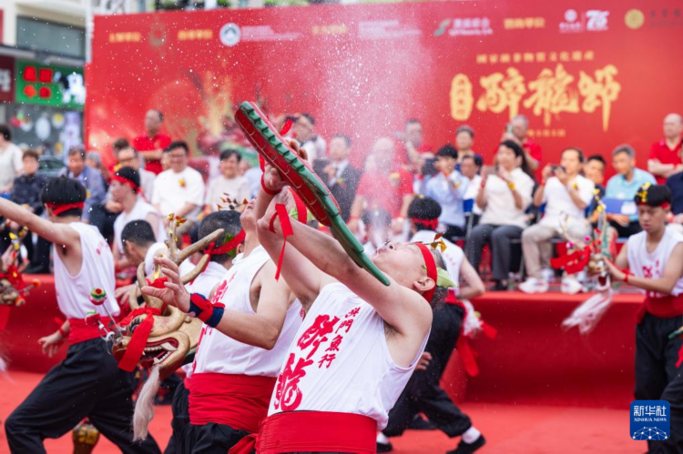 5月5日,“鱼行醉龙节”巡游队伍在活动上表演。