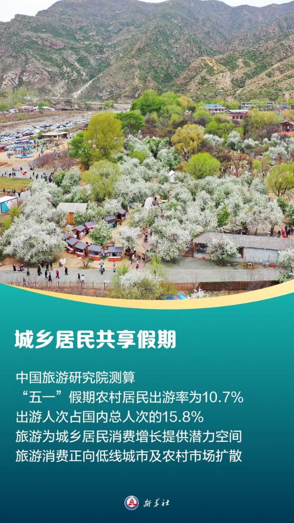 中国旅游研究院测算,“五一”假期,农村居民出游率为10.7%,出游4971.16万人次,占假日国内出游总人次的15.8%。这反映出,旅游已经成为城乡居民最有增长潜力的消费增长空间之一,旅游消费从高线城市向低线城市,从中心城镇向农村市场形成梯度扩散的趋势。