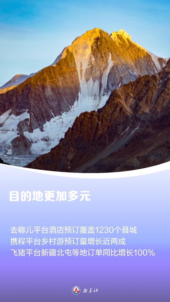 除了经典的旅游目的地持续“火热”,此前相对“小众”的目的地热度明显增高。飞猪平台上,新疆北屯、西藏昌都、青海果洛、云南怒江、海南屯昌等地旅游产品预订量平均同比增长超100%。
