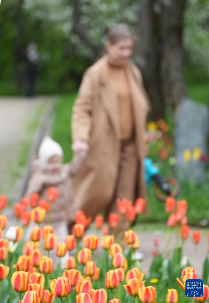 5月5日,在俄罗斯莫斯科,人们在科罗缅斯克庄园内休闲。