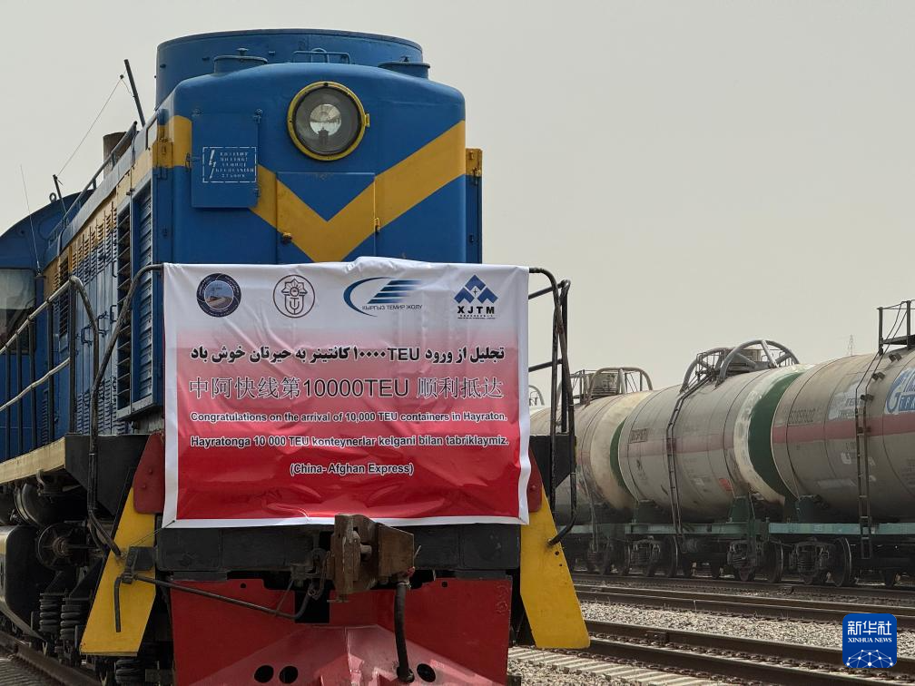 从中国甘肃省兰州市出发的中阿快线4月30日将第1万个标准集装箱运抵阿富汗北部口岸海拉顿,当地举行庆祝仪式。