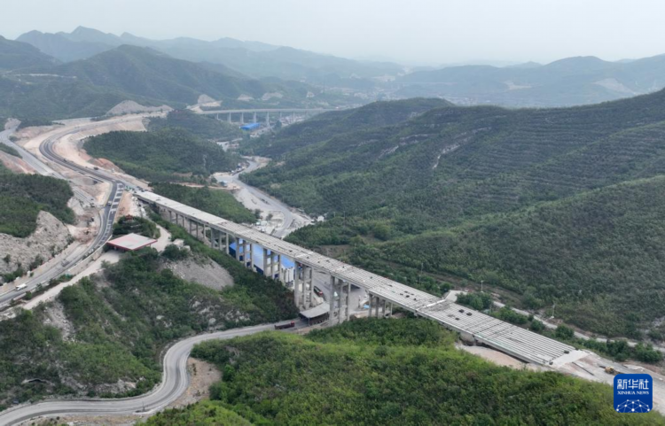 5月7日拍摄的石太高速公路改扩建项目核桃园4号桥建设工地施工现场(无人机照片)。