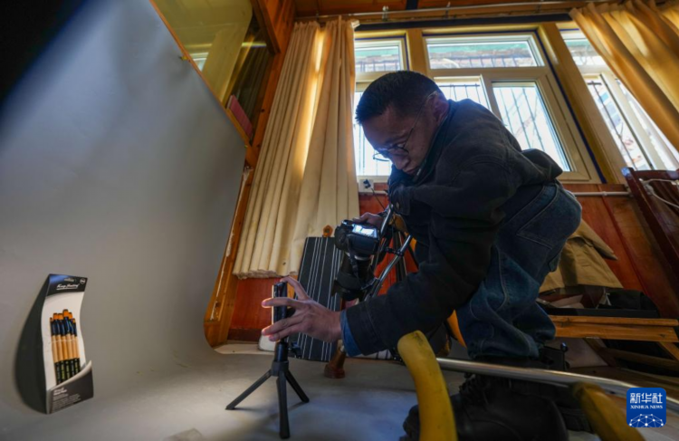 拉巴顿珠在公司拍摄产品(5月5日摄)。