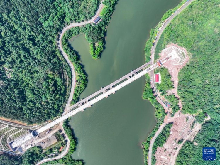 这是5月7日拍摄的成渝中线高铁玄天湖双线大桥建设现场(无人机照片)。